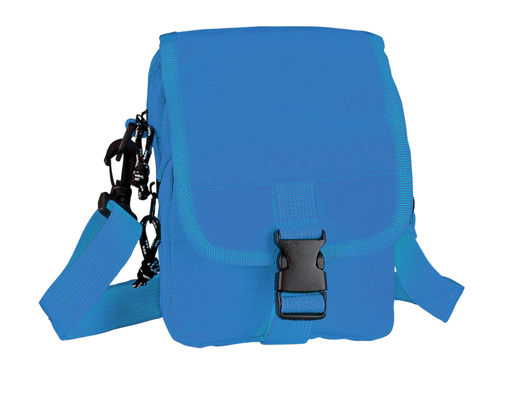 Torbica, z žepoma na zadrgo, moder 600D poliester, nosilni trak s karabinoma, 140x185x75mm, PU vrečka