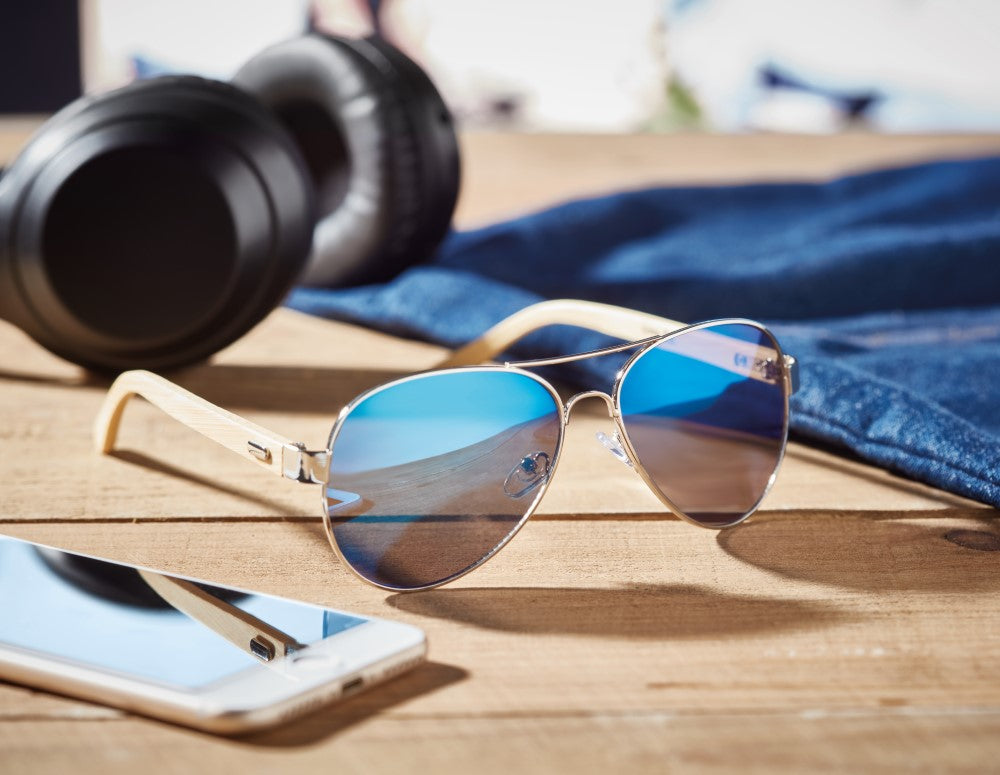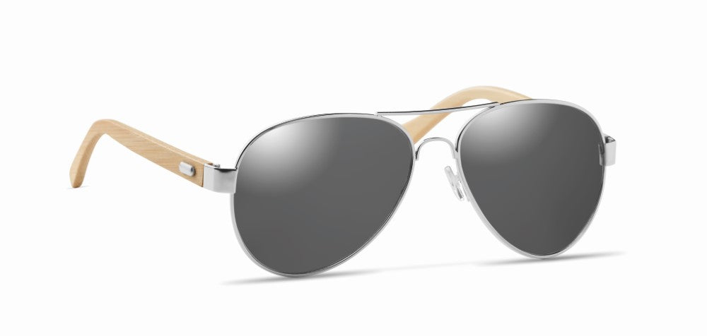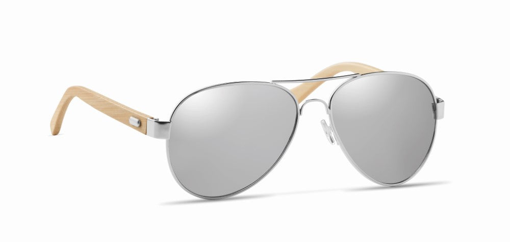 Sončna očala, ročki bambus, metalizirane barve refleksne leče z UV 400 zaščito, mikrofiber etui za očala