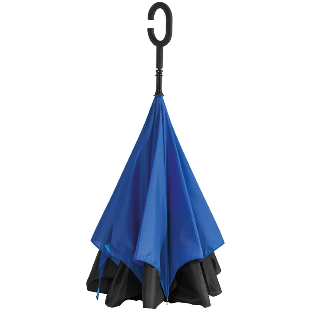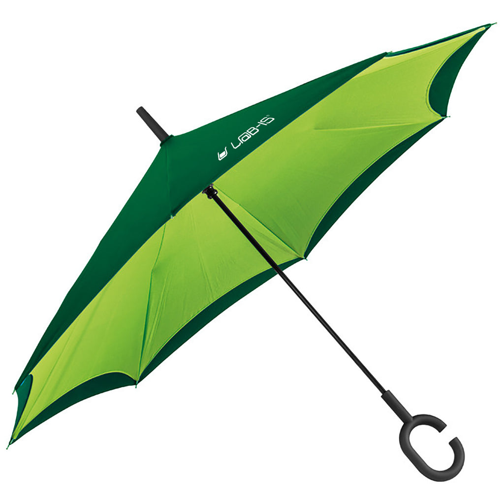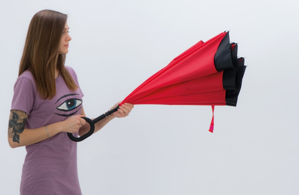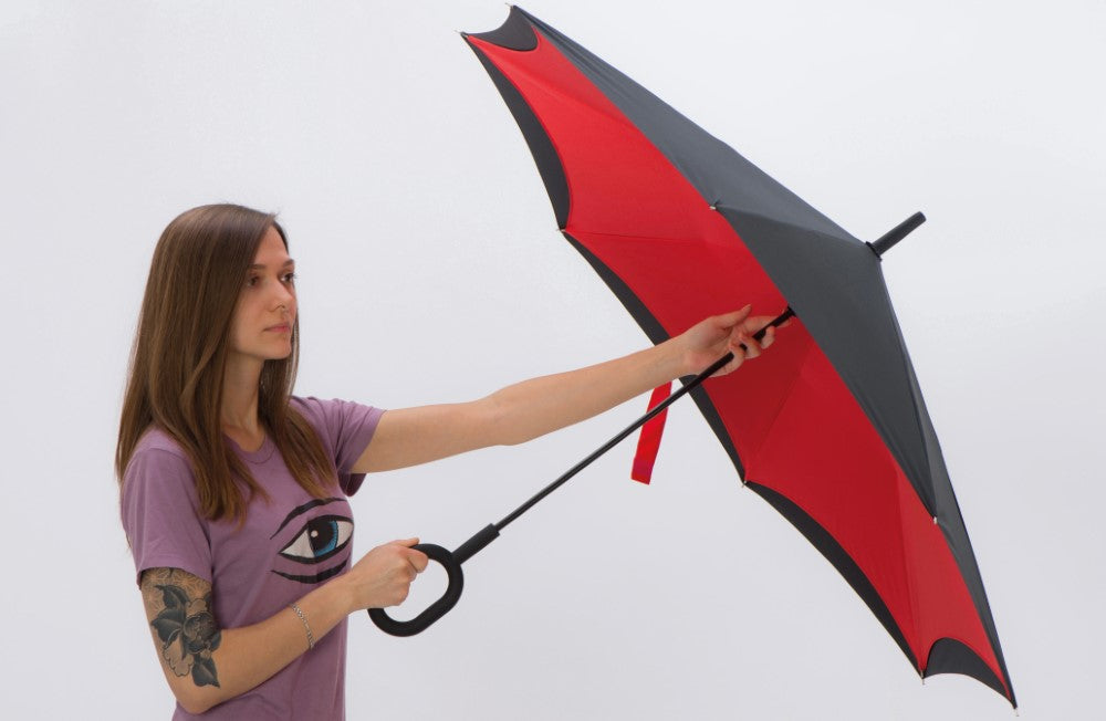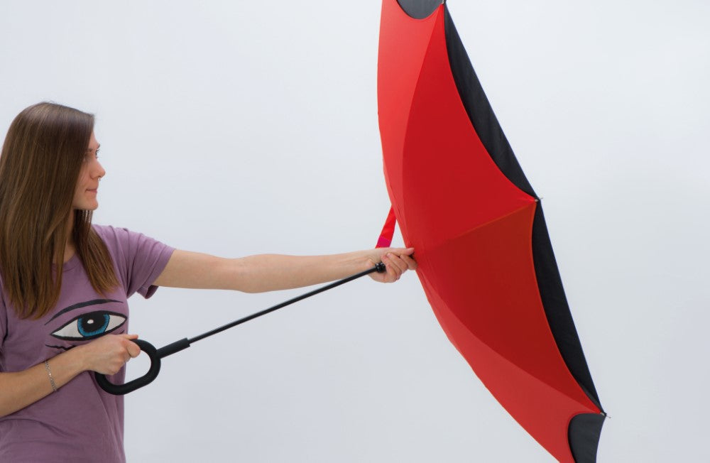 Dežnik, ki je drugačen. Odpira se drugače kot klasični dežniki. Inovativno odpiranje in zapiranje vam omogoča, da ne zmočite predmetov in ljudi okoli sebe. Gumirana kljuka v obliki črke C vam daje možnost, da med uporabo lahko uporabljate obe roki. Dežnik ima ogrodje iz karbonskih vlaken, dve plasti iz nylon pongee 190T materijala, Ø120cm