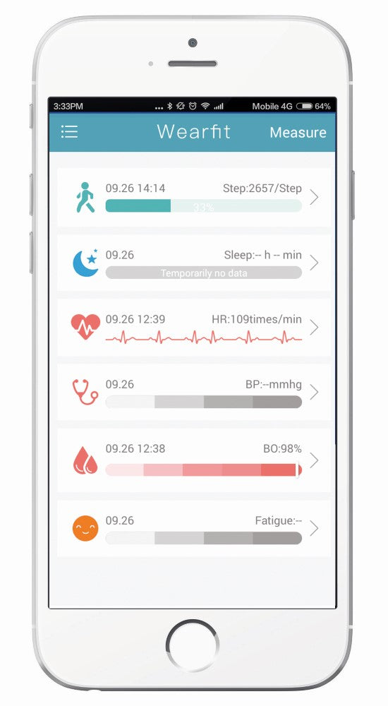 Pametna fitnes ura, 4.0 brezžična športna ura s silikonskim paščkom. 180mAh baterija za ponovno polnjenje. IPX7 vodoodporna. Priložen USB kabel. Ura za delovanje potrebuje zastonjsko aplikacijo (Wearfit), ki se jo zlahka prenese iz vseh trgovin z mobilnimi aplikacijami. Darilna škatla: 73x73x71mm