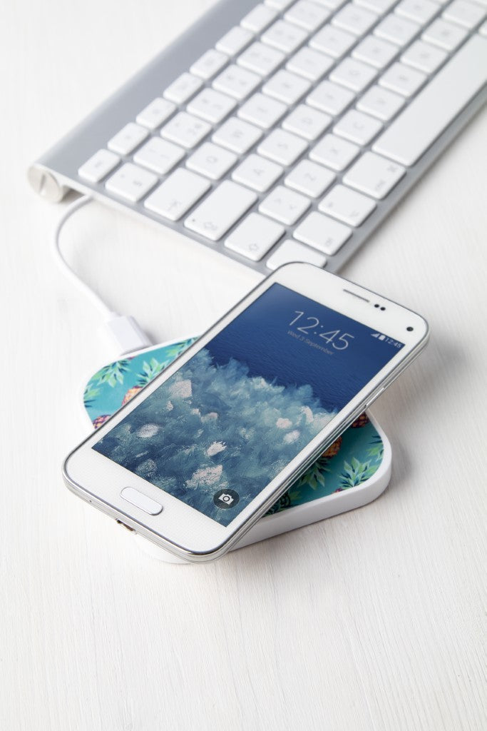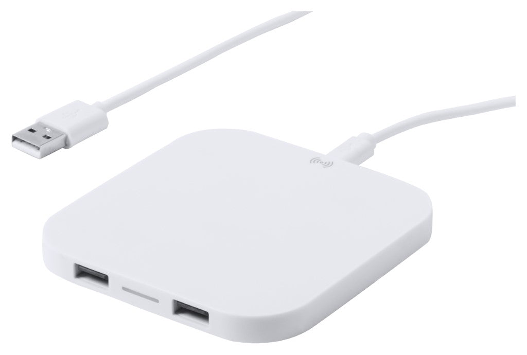 Brezžični polnilec-kvadraten, izhodna moč 2100mAh, dva USB izhoda, priložen mikro USB kabel, plastika, 90x90x7mm, kartonska škatlica