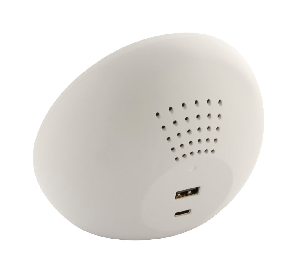 Brezžični polnilec z budilko, za telefone z QI tehnologijo, zelo hitro polnjenje(15W), reciklirana ABS plastika in bambus, USB kabel priložen, 125x120x75mm, kartonska škatla