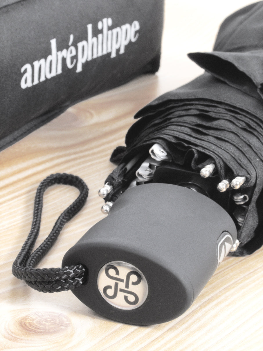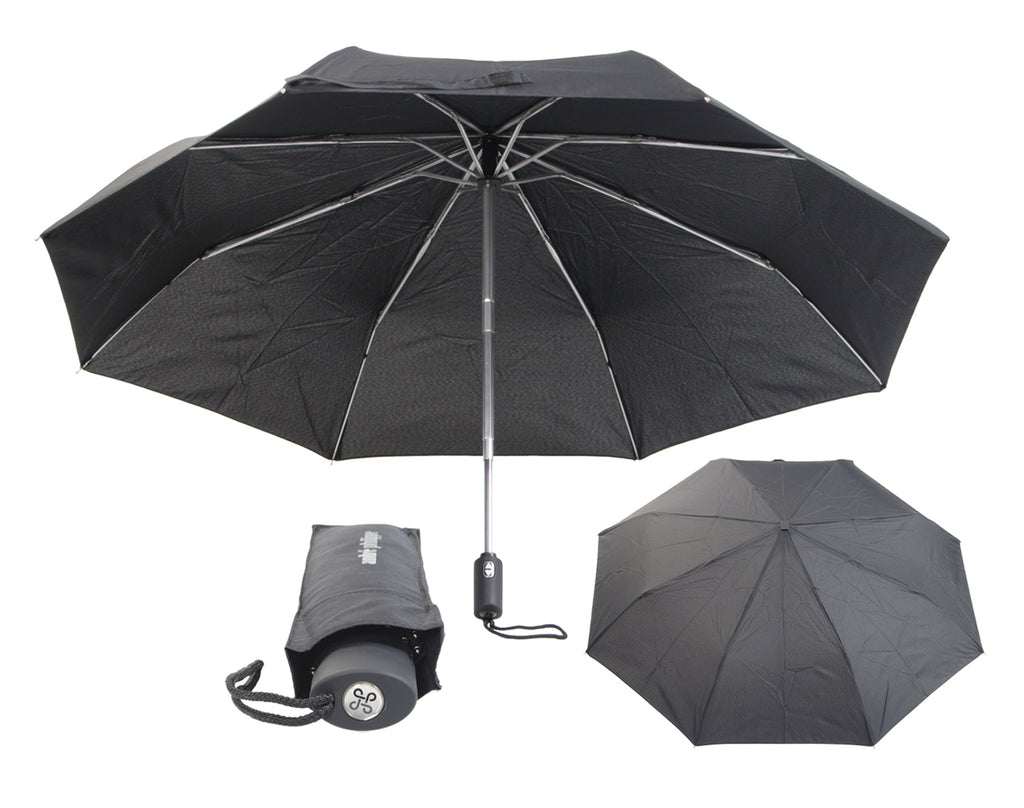 Zložljiv dežnik, avtomatično odpiranje in zapiranje, ogrodje karbon in kovina, črn poliester pongee190T, gumirano držalo, Ø100cm