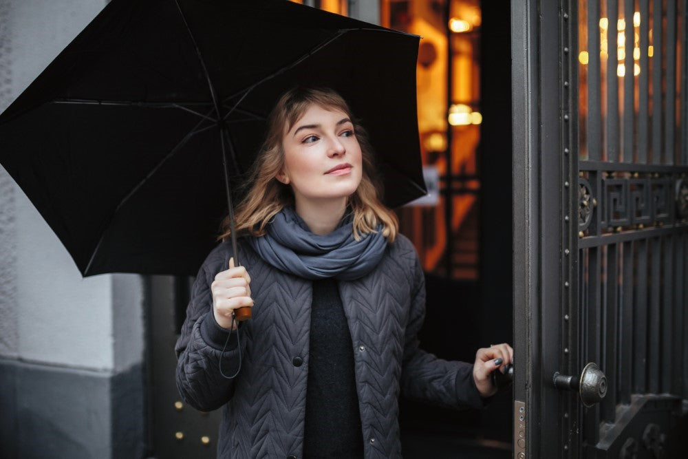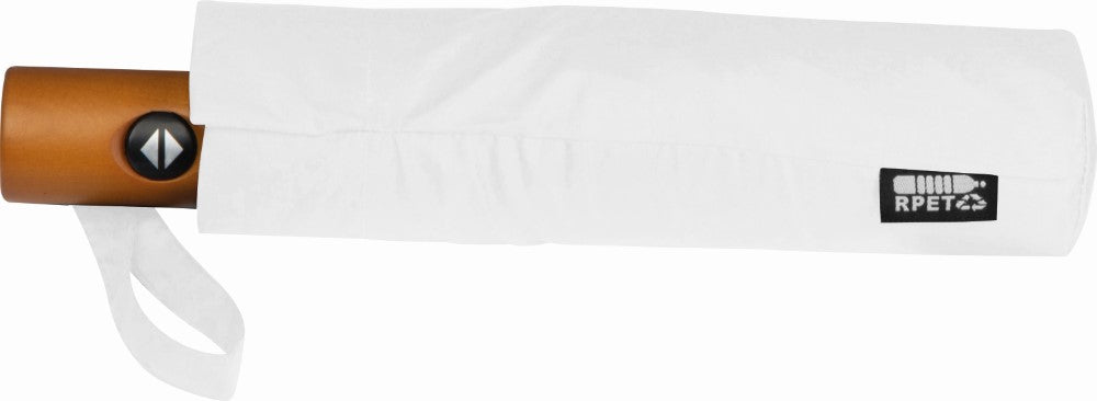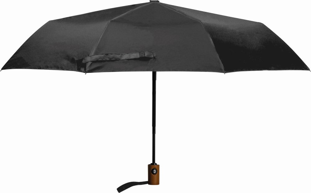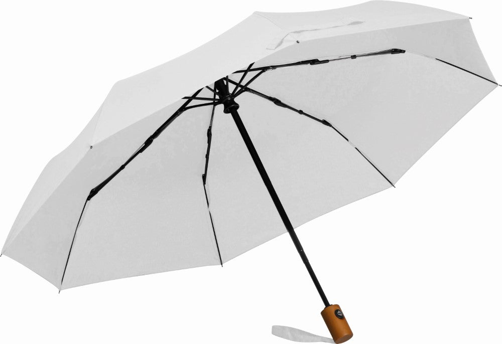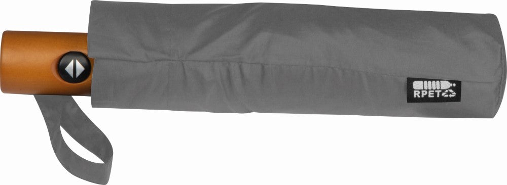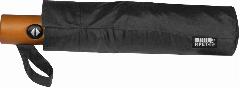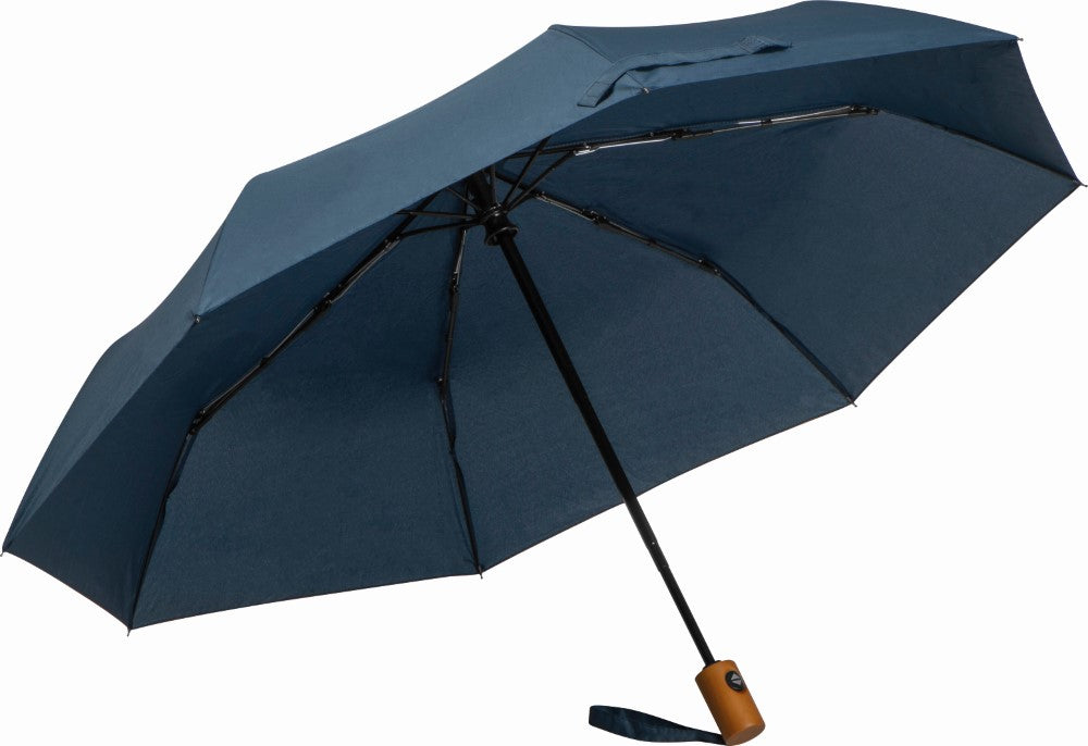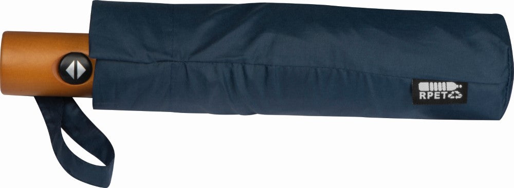 Zložljiv dežnik, RPET recikliran poliester, primeren za vetrovno vreme, avtomatično odpiranje in zapiranje, ogrodje karbon, leseno držalo, Ø100cm
