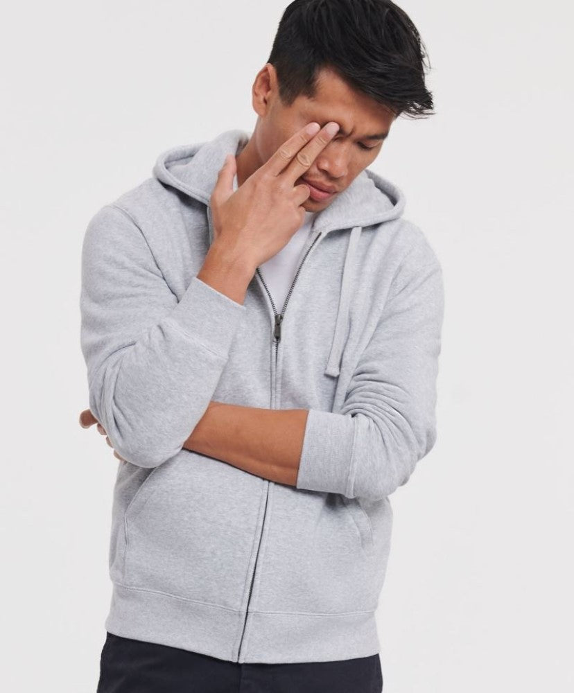 Moška jopica s kapuco (hoodie) in zadrgo (YKK), odlična kvaliteta, 80% česan bombaž in 20% poliester, 280g/m2, vrvice v barvi puloverja, 2 stranska žepa