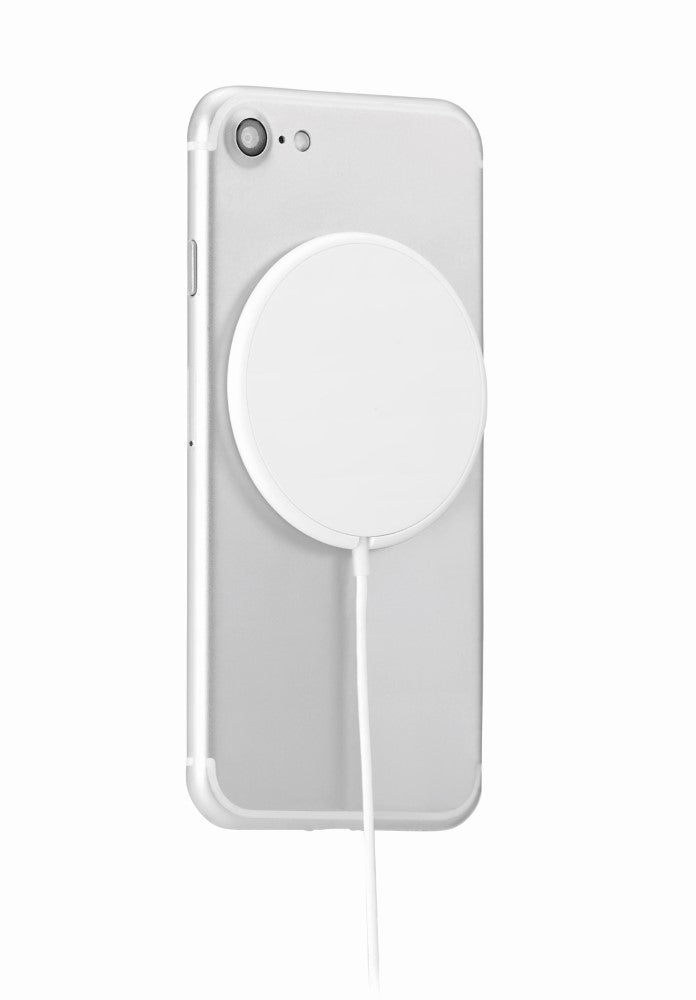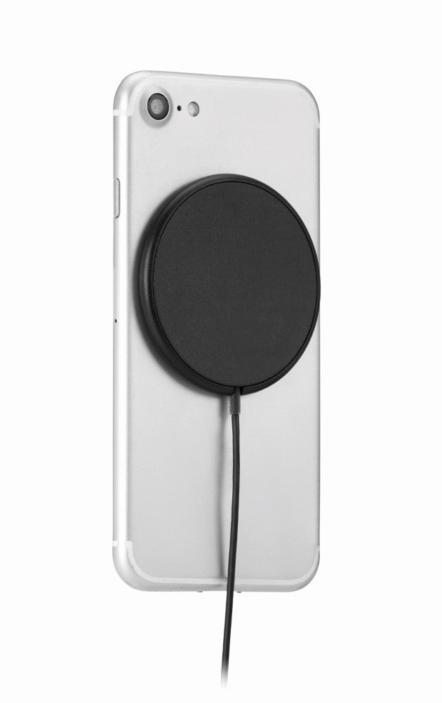 Kovinski magnetni polnilec-okrogel, za hitro polnjenje (10W), tudi za polnjenje nemagnetnih telefonov z QI tehnologijo, USB kabel priložen, Ø60x4mm, kartonska škatla