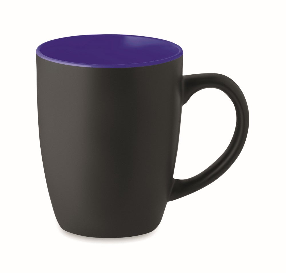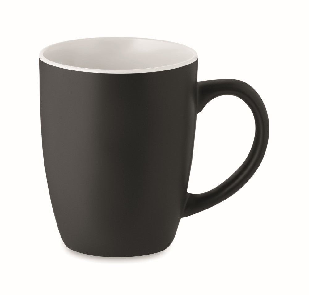 Lonček - 290ml, keramika, možen dotisk ali gravura na zunanjo črno površino, barva gravure kot sijoča notranjost lončka, Ø85x100mm, bela kartonska škatla