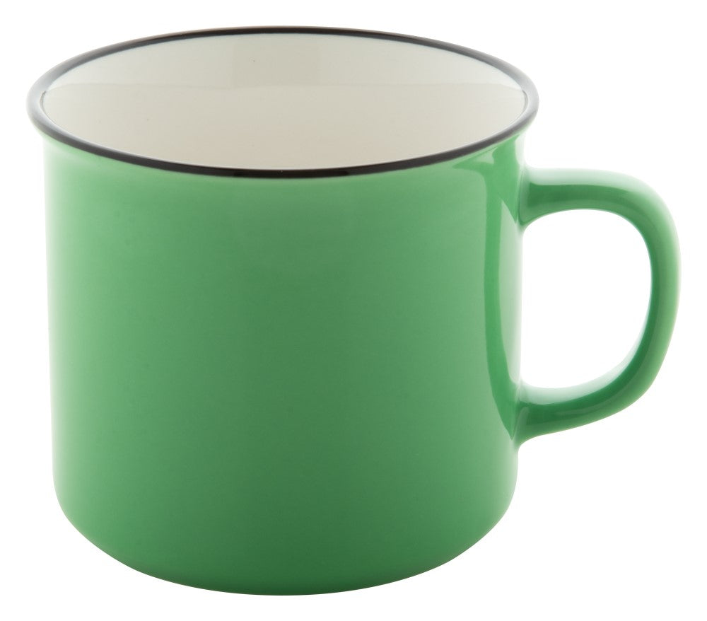 Lonček, keramika - 300ml, s črnim robom, zunanja stran v barvi, Ø90x82mm, bela kartonska škatla