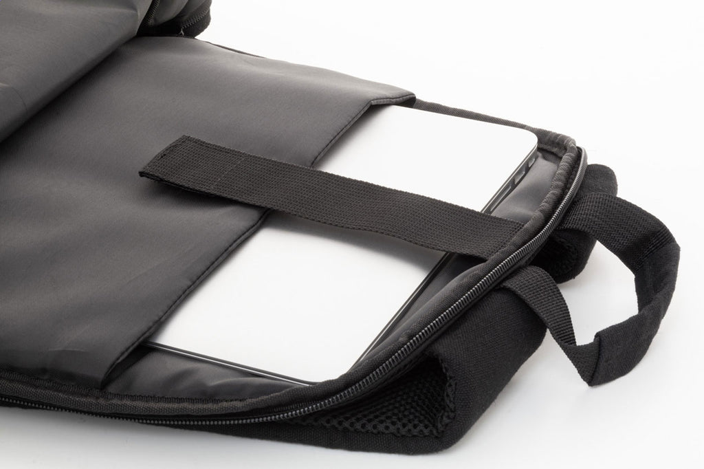Nahrbtnik, z veliko oblazinjenih žepov in predelov na zadrgo, tudi za prenosnik (15"), trak za voziček, kanvas: 70% recikliran bombaž in 30% recikliran poliester, 46x32x14cm