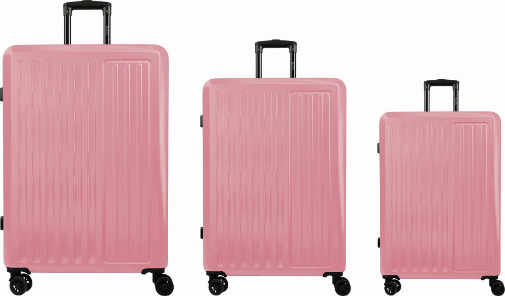 Set treh kovčkov na kolesih "Pierre Cardin", vrtljivi-močni in odporni koleščki, najmanjši kovček je tudi za potniško kabino letala, vzdržljiv ABS material, mere kovčkov: 34x23x55cm, 44x27x65cm, 50x29x75cm