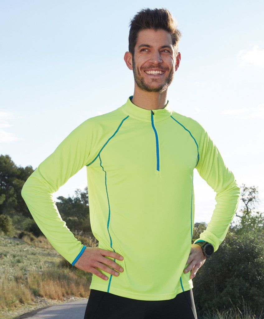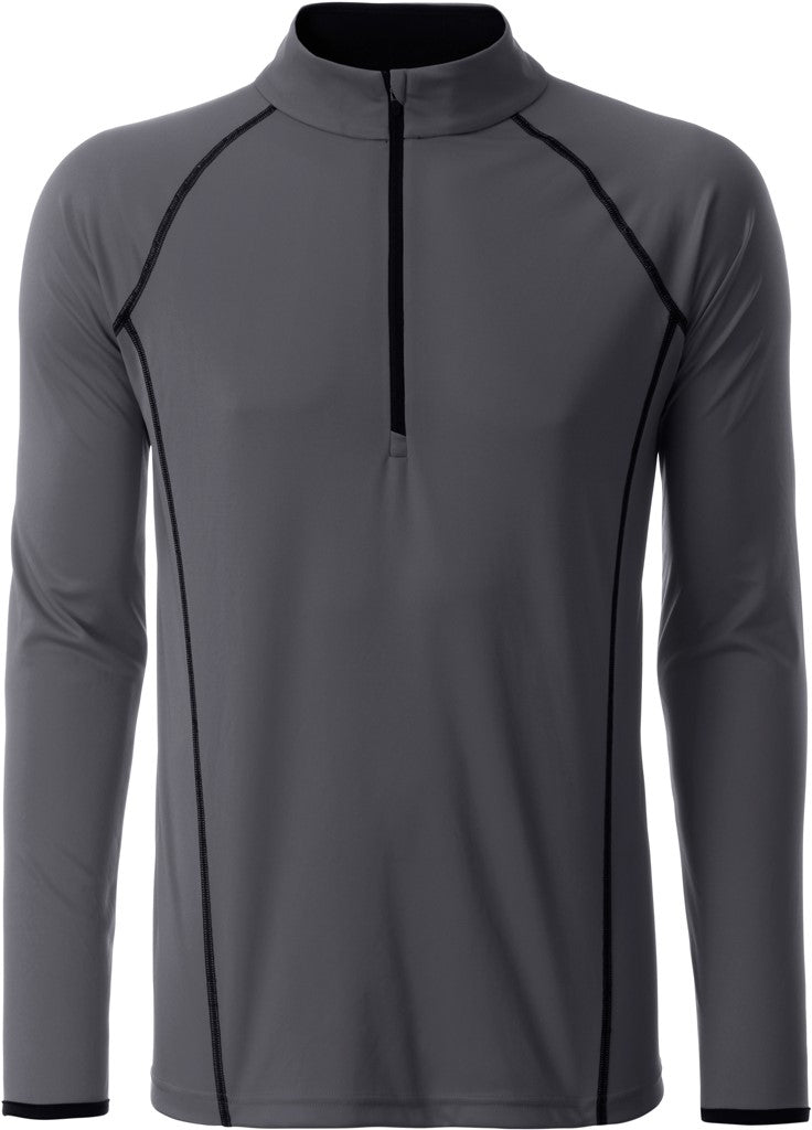 Moška majica, primerna za tek, 100% poliester, 130g/m2, odvaja vlago in znoj, se hitro suši, dolg rokav, 1/4 zadrga