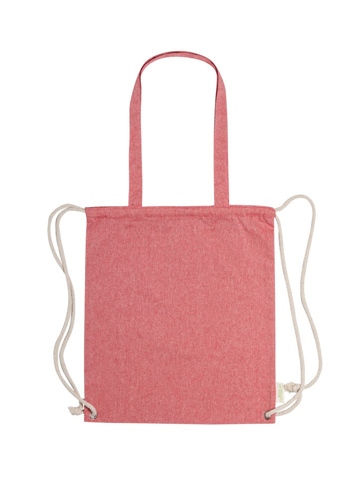 Vreča z dolgimi roči ali nahrbtnik, 140g/m² recikliran bombaž, melirane barve, 380x420mm