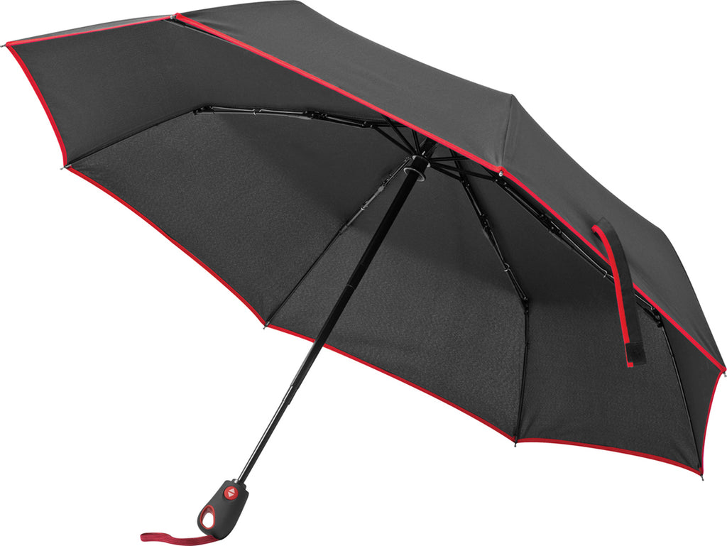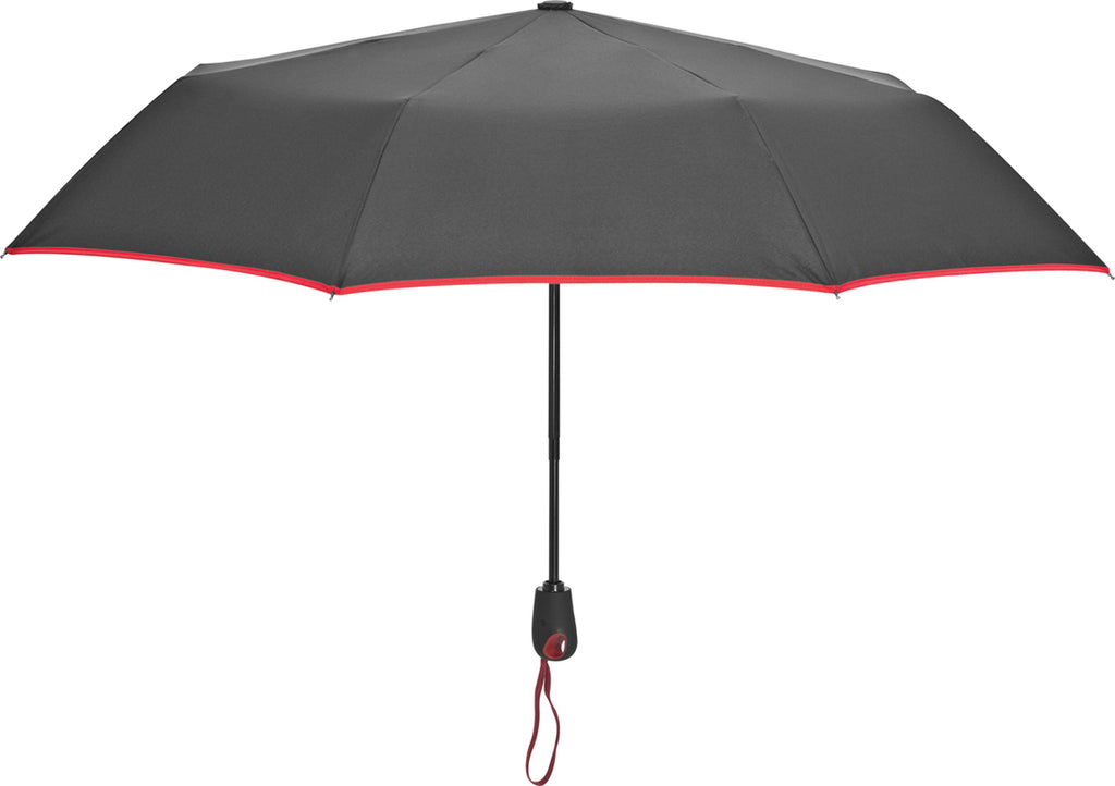 Zložljiv dežnik, avtomatično odpiranje in zapiranje, ogrodje karbon in kovina, črn poliester-pongee 190T, obroba v barvi, gumirano držalo, Ø100cm